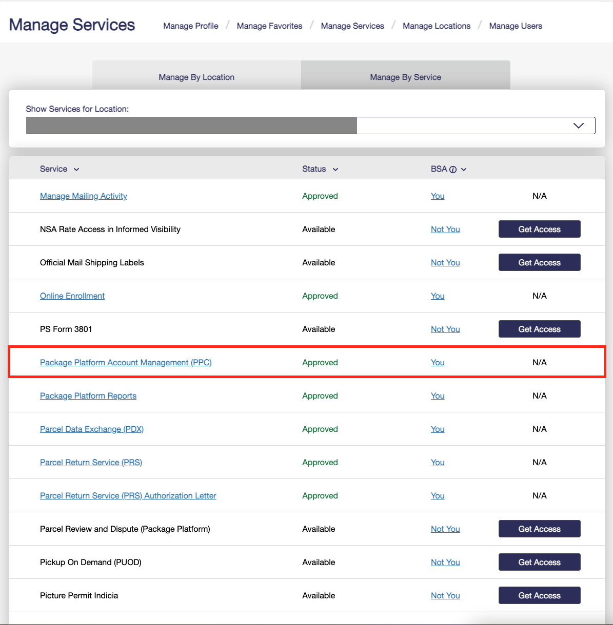 Once your request for Enterprise Payment System and Package Platform Account Management has been approved you will need to contact your local USPS account representative to request your Merchant Account Code.