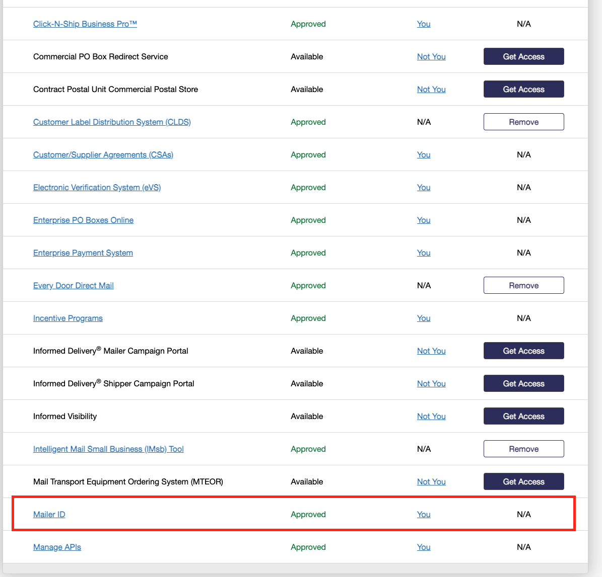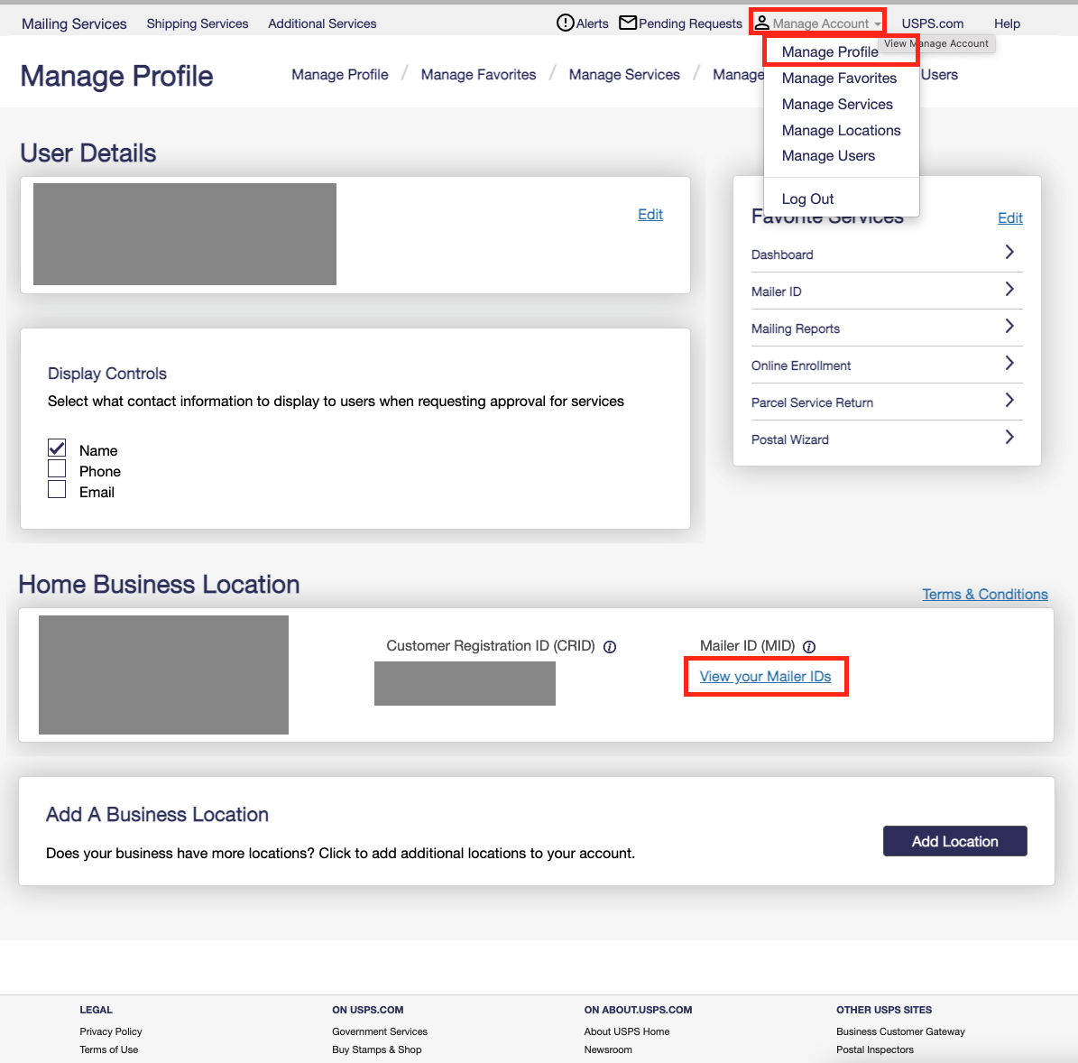 MID: retrieve this from the "Manage Profile" page and select "view your Mailer IDs"